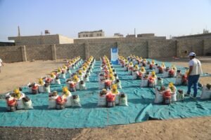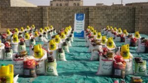 “شركاء للأعمال الإنسانية” توزع 50 سلة غذائية رمضانية للأسر النازحة في مأرب.